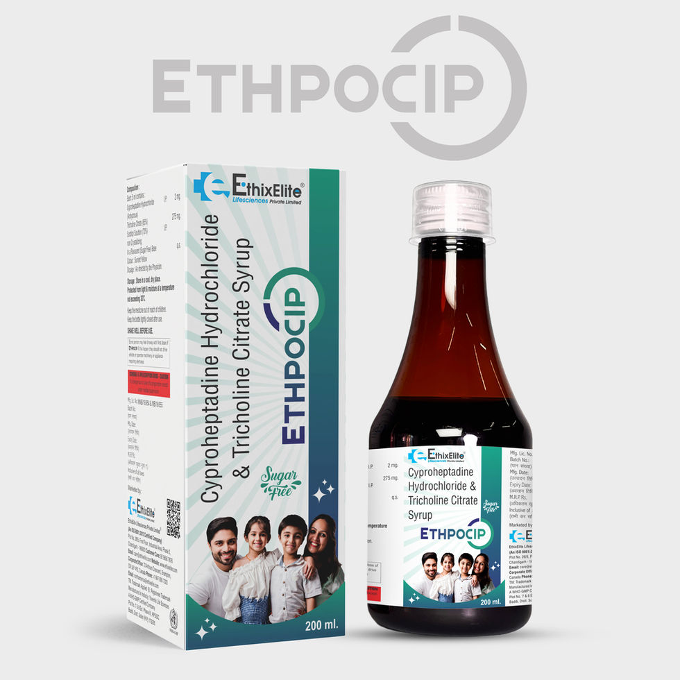 Cyproheptadine & tricholine citrate syrup is a drug medication under the branding of ETHPOCIP SYRUP. This medication is a hunger stimulant used to revive a patient’s appetite. Appetite is the natural desire for food, and hunger is the appetite indicator. During some digestive problems, the person’s appetite is reduced, and the person can suffer from nutrient deficiencies that can further instigate the health condition for the worse.