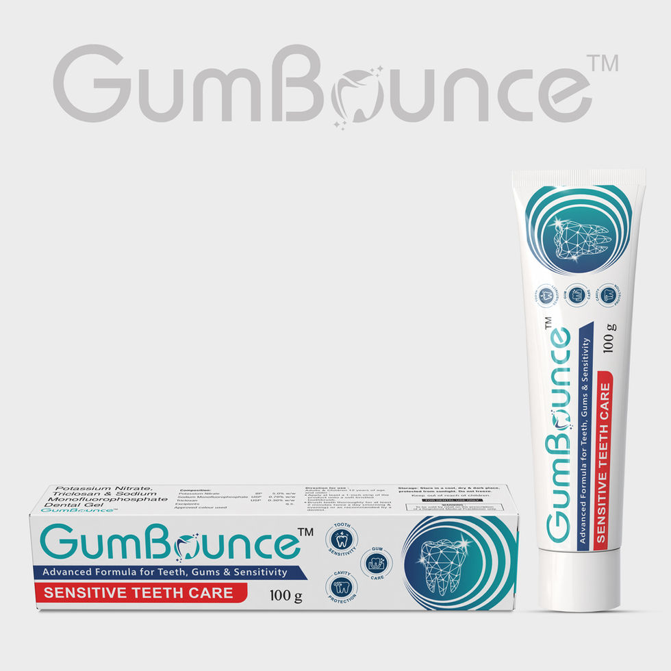 GumBounce™ is a therapeutic dental gel formulated to provide relief from tooth sensitivity, prevent gum infections, and strengthen teeth. The combination of potassium nitrate, triclosan, and sodium monofluorophosphate helps reduce nerve sensitivity, fight oral bacteria, and protect teeth from cavities.